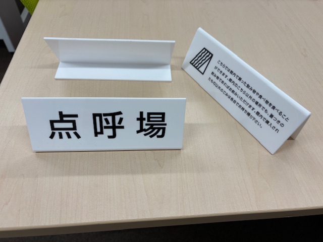 L型プレートは、病院や会社のカウンターの上に、受付と書かれたプレートをよく見かけます。